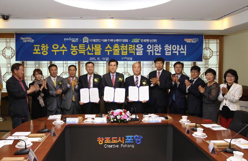 포항시가 지역의 우수 농식품과 가공식품 수출에 가속도를 내고 있다. 포항시는 19일, 국제한인식품주류상연합회(회장 허성칠) 및 경북통상(주)(대표 박순보)와 지역의 우수 농식품과 가공식품에 대한 수출업무 협약을 체결했다. 이날 협약식에서 이강덕 포항시장과 허성칠 국제한인식품주류상 연합회장, 경북통상(주)박순보 대표이사는 지역의 우수 농․특산물과 그 가공식품 수출에 대해 상호 정보교환과 컨설팅 지원 등 농․특산물의 수출관련 사업 공동추진을 위한 협약서를 체결했다. 이날 협약에 참여한 국제한인식품주류상연합회는 미국, 캐나다 등 한인을 위한 식품과 주류, 잡화수출입 대행과 판매를 하고 있으며 경북통상(주)는 국가나 지방자치단체의 해외수출입 업무를 대행하는 기관으로 해외 15개국과 수출 에이전트 네트워크를 운영하고 있다. 이번 협약을 통해 포항시는 수출 신상품 발굴을 통해 사업성과와 효율성을 높이는 마케팅 전략을 구사할 수 있게 되어 수출시책 추진성과를 높이고 안정적인 농식품 수출기반 인프라를 구축하게 된다. 협약의 주요내용은 △포항시 우수 농․특산물과 가공식품에 대한 공동 마케팅 및 수출업무 상호협력 △농식품 국내·외 홍보 판매 등 시장정보 공유 △해외시장 조사 및 판촉전 등으로 지역 우수 농․특산물의 수출증대를 위한 유기적인 협조체제를 구축한다는 내용이 포함됐다. 이번 협약체결은 우수 농․특산품을 통한 해외마케팅을 준비 중이던 포항시에 국제한인식품주류상연합회가 우수 농․특산품 수입을 요청해옴에 따라 도내 농식품 수출입업무를 담당하는 경북통상(주)와 자연스럽게 연결돼 협약이 체결됐다 포항시는 이번 협약을 계기로 올해 어려운 경기상황에서도 지난해 대비 수출실적 10% 상승을 이끌어 낼 수 것으로 기대하고 있다. 이강덕 포항시장은 “이번 업무협약 체결로 수출 신상품 발굴과 안정적인 농식품 수출기반 조성으로 수출시장에서의 애로를 해소하고 어려운 지역경제에 새로운 활로를 모색하는 계기가 될 것으로 기대한다.”고 말했다. 한편, 이날 협약식에 참여한 국제한인식품주류상과 경북통상(주)는 수출업무협약서 조인 후 올해 농식품 수출확대방안에 대한 토의 진행과 행사장내 전시된 포항지역의 우수농식품 및 가공식품에 대한 품평의 시간도 가졌다.// 심후보 기자