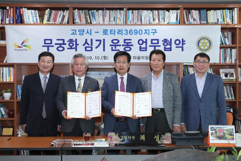 [미디어타임즈= 이옥수 기자] 고양시(시장 최성)와 국제로타리3690지구(총재 김용진)는 지난 16일 시청 타운미팅룸에서 나라꽃 무궁화 심기 운동 확산을 위한 업무협약을 체결했다.