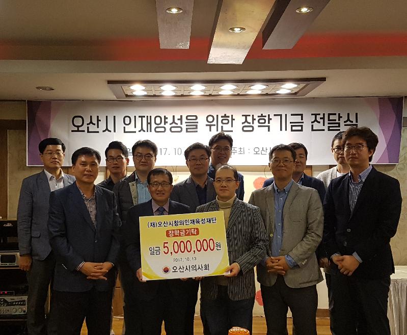 전달식에 참석한 김태정 오산시부시장은‘미래인재육성을 위해 노력하는 교육도시 오산, 아동친화도시 오산의 철학을 이해하고 오산시창의인재육성재단에 장학금을 기탁해줘 고맙고 감사하다고 밝혔다.