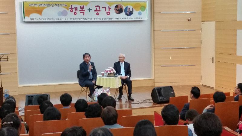 정신건강의학과 전문의 이영문 교수와 아주대학교 의료원장을 지낸 이호영 교수는 토크쇼에서 참석자들과 ‘삶의 행복’에 대해 함께 생각하고, 정신장애 사례에 대한 다양한 의견을 나누며 공감하는 시간을 마련했다.