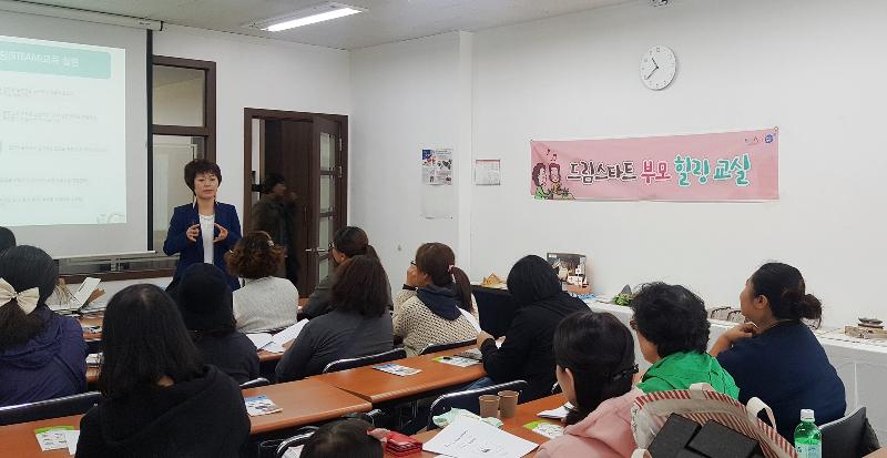 부모힐링교실은 1부와 2부로 나누어 진행됐다. 1부에서는 성장주기별 자녀 양육정보를 제공했으며, 서로의 양육정보를 공유하고 소통하는 시간이 마련됐다. 2부에서는 한국사 팝업북 만들기 작업을 함께하고 팝업북 지도사 자격증 취득방법 등을 안내해 직업탐색의 기회도 제공했다.