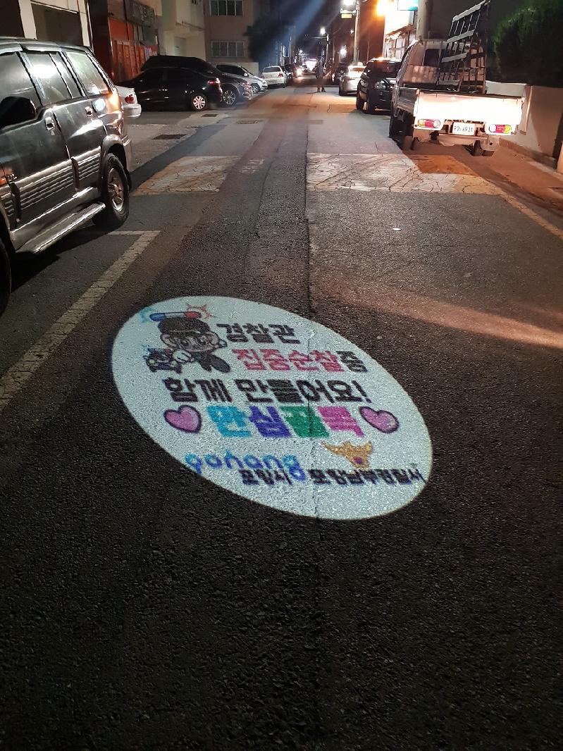 [미디어 타임즈 = 배수남 기자] 포항남부경찰서(서장 오동석)는 지난 17일 포항시와 함께 관내 주택밀집지, 원룸단지 등 어두운 골목을 밝히고 주민들의 안전한 귀갓길 조성을 위해 상대동 등 어두운 골목길 8개소를 선정하여 범죄예방 LED 로고젝트를 설치하였다. 로고젝트는 LED 조명을 이용하여 바닥이나 벽에 범죄예방 문구와 이미지를 투영하여 어두운 밤길에도 시각적 메시지를 전달할 수 있는 것으로, ‘경찰관 집중 순찰 중, 함께 만들어요 안심골목’,‘당신 곁을 언제나 경찰관이 지켜줄게요, 안심사랑골목’과 같은 범죄예방 문구와 이미지를 투영해 주민들에게는 심리적 안정을, 범죄자들에게는 경각심을 주어 범죄를 예방하기 위해 고안한 것이다. 주민들은“귀여운 캐릭터와 문구, 조명으로 어두웠던 골목길이 밝아져서 좋고, 범죄예방에도 도움이 될 거 같다”는 긍적적인 반응을 보였다. 포항남부경찰서 범죄예방진단팀(CPO)는 앞으로도 포항시와 지속적으로 협력하여 안심골목길 사업 등 범죄예방환경개선을 중점적으로 추진할 예정이다.