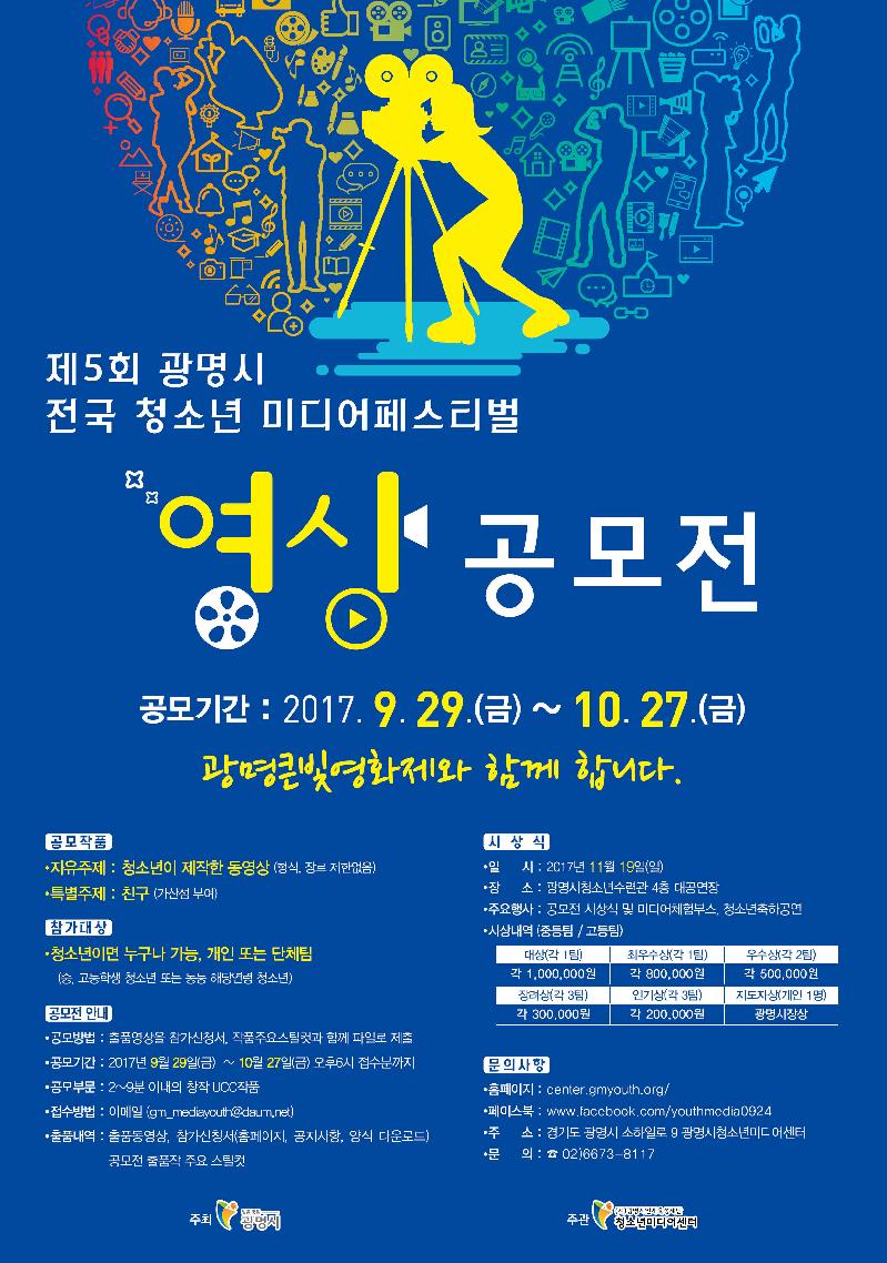 작품 시사회 및 시상식은 11월 19일 광명시청소년수련관 4층 대공연장에서 열릴 예정 이다.