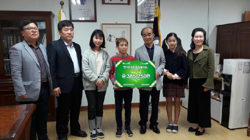 김성민 반지초등학교 전교회장은 “먹고 싶은 것도 많고 갖고 싶은 것도 많지만 어려운 이웃을 위해 기부했으며, 좋을 일을 한다고 생각하니 행복합니다” 라며 소감을 전했다.