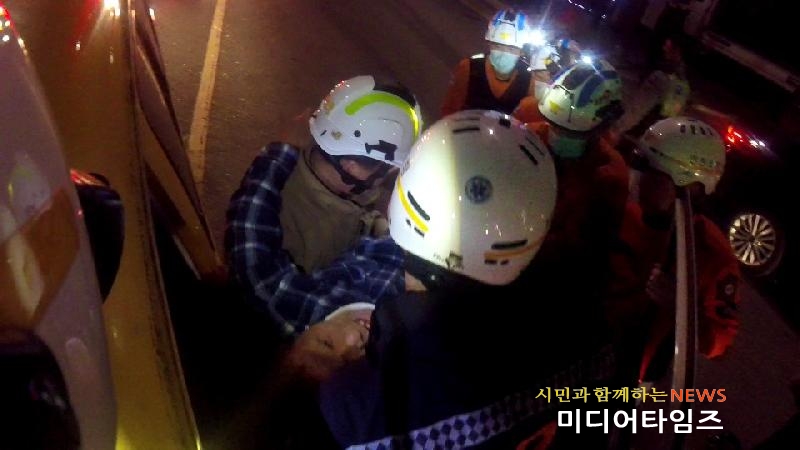 [미디어타임즈=문상수 기자] 인천서부소방서(서장 김준태)는 19일(목) 오전 03시 55분경 석남동 223-714 하이마트 사거리에서 국빈관 석남 사거리 가는방향 일반도로상에서 버스와 승합차 간 추돌 교통사고가 발생했다는 신고를 받고 출동하여 구조했다.현장 도착 당시 승합차 보조석에 다리가 끼인 양 모씨(남, 51세)가 차 안에 갇혀 고통을 호소하는 상황이었다.이에 석남 119안전센터 및 119구급대원은 양 모씨를 경추보호대로 고정하고, 신속히 문 개방 및 응급조치를 실시하며 안전하게 구조하여 인근병원으로 이송하였다.소방서 관계자는 “교통사고는 한순간의 방심으로 발생할 수 있으며, 평상시 안전거리 확보와 규정속도를 준수해 안전운전을 생활화 해달라”고 말했다.