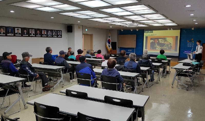교육은 경찰서 교육 담당자의 사고 동영상 방영을 시작으로 사고예방을 위한 안전수칙 전달 순으로 진행됐다. 안전교육 후에는 경찰서에서 준비한 야광스티커와 시에서 준비한 방한신발 및 귀마개 등 겨울철 안전물품을 지급했고 폐지 줍는 어르신들의 생활실태조사 및 기타 만족도 조사를 끝으로 마무리 됐다.
