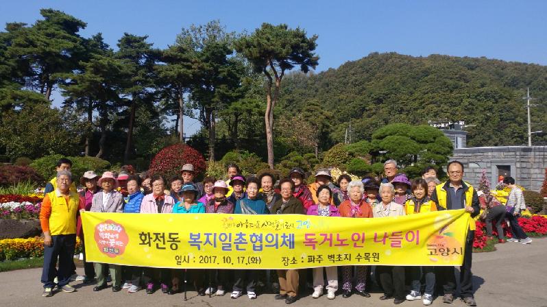 [미디어타임즈= 이옥수 기자] 고양시(시장 최성) 덕양구 화전동 복지일촌협의체는 지난 17일 관내 어르신 25분을 모시고 독거노인 나들이 행사를 개최했다.