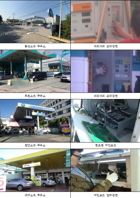 ※ 정량미달 주유소 편재 : 부천, 화성, 대전, 천안, 양양 등 5개 주유소이번에 검거된 피의자 박某(37세)씨 등 주유업자 2명(구속)은 과거부터 주유업에 종사하던 자들로 소비자들이 감량사실을 느끼지 못하는 수준인 3%∼5.5% 정도로 석유를 판매하여 수익을 남길 목적으로 주유기에 변조프로그램이 입력된 메인보드로 교체하거나 변조 프로그램을 이식하는 수법으로 지난 2013년 6월경부터 충남 천안 소재 ○○○주유소에서 총 67억원 상당의 석유를 판매하여 그중 2억원 상당을 편취하는 등 천안, 대전, 양양, 부천, 화성 등 5개 지역 주유소에서 총 417억원 상당의 석유를 판매하여 그 차익인 15억원 상당을 편취한 것이다.
