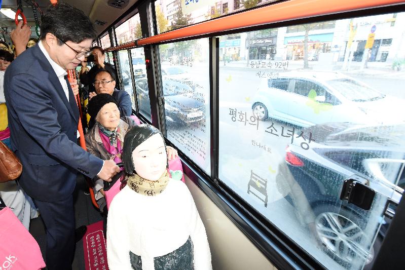 '평화의 소녀상', 27일까지 92번 버스 타고 위안부 피해 할머니 명예·인권회복 메시지 전할 예정-