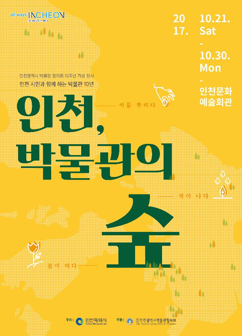 박물관협의회 10주년 기념 대표 행사로 인천시 관내 27개관 공동 특별전시 '인천, 박물관의 숲'이 미추홀 전시실에서 개최된다. 대한민국 최초의 공립박물관으로 건립된 인천시립박물관을 시작으로 현재까지의 인천시 박물관의 역사를 ‘씨를 뿌리다’, ‘싹이 나다’, ‘꽃이 피다’ 세 시기로 나누어 각각의 시기에 설립된 박물관을 소개하고 대표 유물을 모아 전시한다.