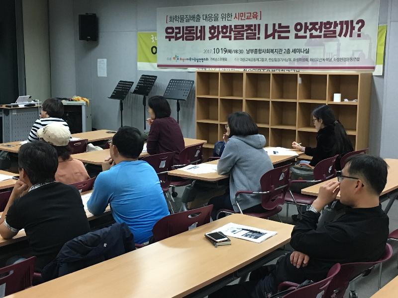 한편, 화성의 시민사회단체들은 지난 9월 19일 '화성시 화학사고 대응 조례제정과 대비체계 구축을 위한 정책토론회'를 개최한 바 있다. 이후 '화학물질 안전관리와 지역사회 알권리 조례'를 제정해야 한다는 공감대를 이뤘고 오늘 시민교육은 그 일환으로 진행됐다.