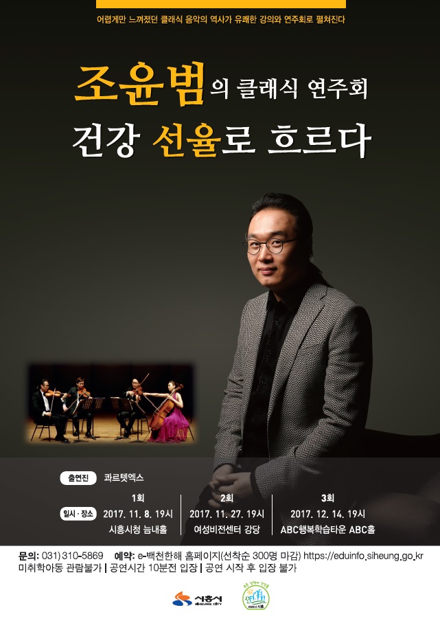 연주회에 대한 상세한 내용은 e-백천학해(http://eduinfo.siheung)에서 확인 할 수 있으며, 시흥시 건강도시과(031-310-5869) 문의하면 된다.