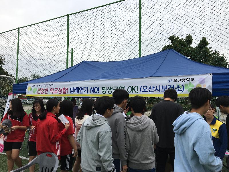 오산시보건소는 지난 18일 오산중학교 운동장에서 청소년 및 시민을 대상으로 건강관리와 금연실천 홍보부스를 운영했다.