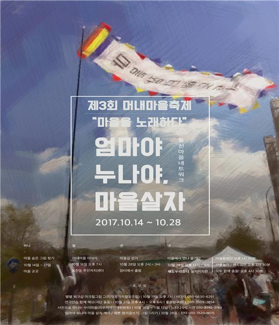 [미디어타임즈= 이옥수 기자] 용인시 수지구 동천동은 14~28일 동천마을네트워크가‘제3회 머내마을 축제’를 연다고 밝혔다.