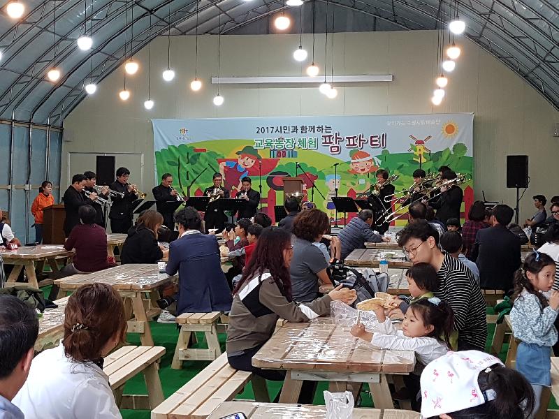 수원시는 이날 팜파티에서 수원시 농가(대도시 근교 농업)의 특징을 살린 ‘교육 농장’을 홍보했다. 교육 농장을 운영하는 강소농(强小農)들은 행사장에 농장을 홍보하는 게시판을 설치하고, 치즈 만들기 등 체험 프로그램을 운영했다.
