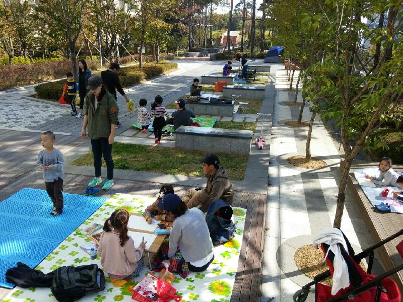 모든 참가자들은 가족단위로 참여해 자녀는 자유롭게 그리고 싶은 그림을, 부모는 공원에서 여유를 즐기는 모습을 보였다.