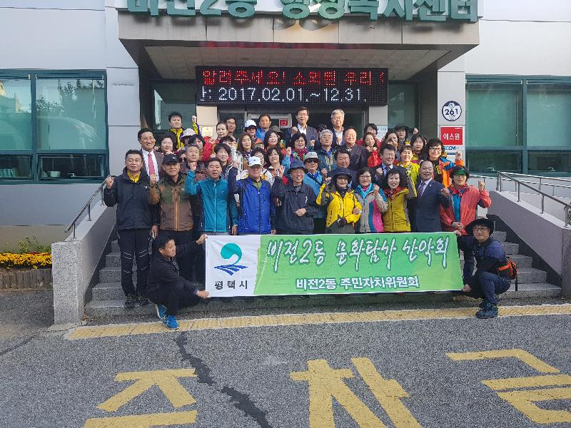 [미디어타임즈= 이옥수 기자] 평택시 비전2동 행정복지센터(동장 최중범), 주민자치위원회(위원장 조용찬)는 지난 21일 주민자치프로그램으로 문화탐방산악회 발대식을 개최했다.