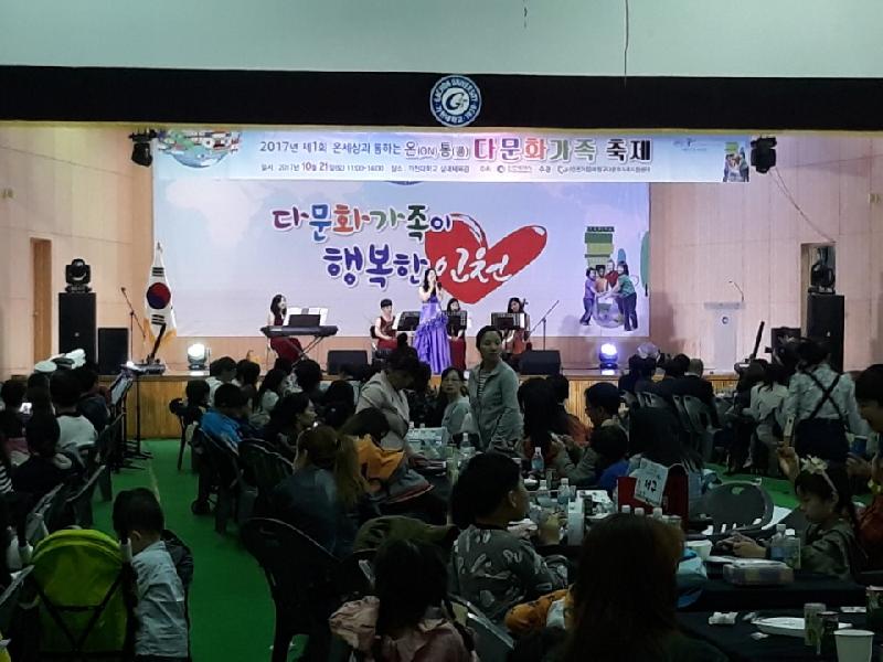 이번 축제는 인천광역시(인천거점부평구다문화가족지원센터) 주최(주관)으로 지난 21일 가천길대학 실내체육관(연수구 연수동 소재)에서 열렸으며 다문화 가족, 시민 등 1,000여명이 참석해 진행을 하였다.