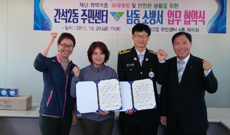 [미디어타임즈= 김광한 기자] 인천 남동구 간석2동(동장 성길순)이 지난 20일 남동소방서 간석119안전센터(센터장 김진간)와 관내 재난 취약계층의 화재예방 및 안전한 생활을 지원하기 위한 업무협약식을 개최했다.