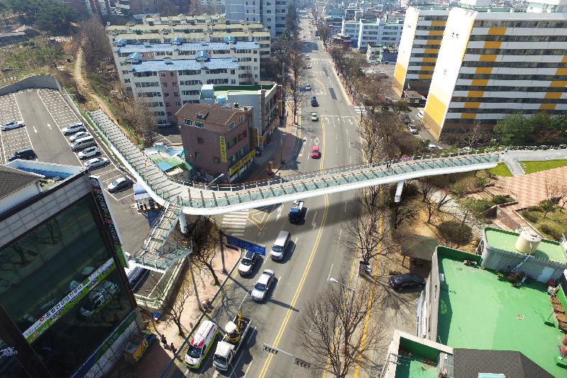 사업 추진 과정에서 반대하는 목소리도 있었으나, 3차례의 주민설명회를 통해 공원 조성 사업의 필요성을 거듭 설명했고, 주민 의견을 적극 반영하여 선형을 개선하고, 교량을 이용하는 계단 설치, 경관 디자인을 적용하여 주변 환경과 어울리도록 강관 거더형 교량과 경사로를 설치하고, 경관 심의와 기관 협의를 통해 이용의 안전과 경관을 고려한 강화유리 디자인 난간과 미끄럼 방지를 위한 포장재, LED조명, 보조신호등 등을 적용했다.