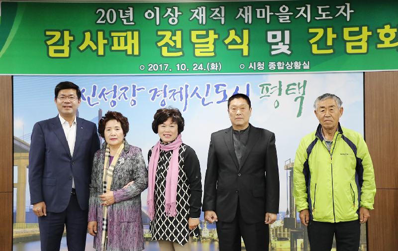 [미디어타임즈= 이옥수 기자] 평택시(시장 공재광)는 24일 시청 종합상황실에서 20년 이상 재직한 새마을지도자 8명에게 감사패를 전달하는 자리를 가졌다.