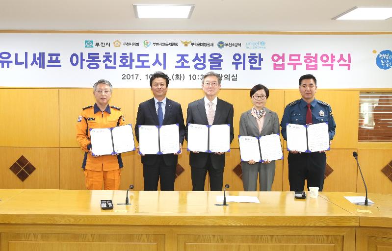 [미디어타임즈= 이옥수 기자] 부천시와 유니세프 한국위원회는 24일 아동친화도시 조성을 위한 업무협약을 체결했다.