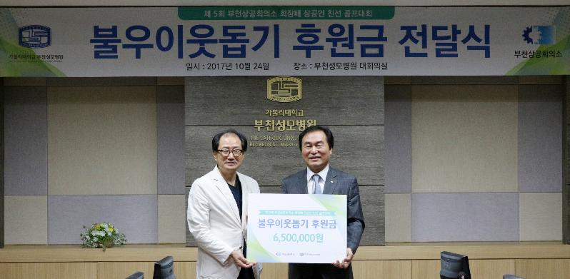 한편, 부천상공회의소는 불우이웃돕기 부천상공회의소 회장배 상공인 골프대회를 통해 마련된 성금을 지난 2014년부터 부천성모병원에 기탁하여 부천시 저소득가정의 의료비, 재활보조비, 후생복지비 등으로 지원하고 있다.