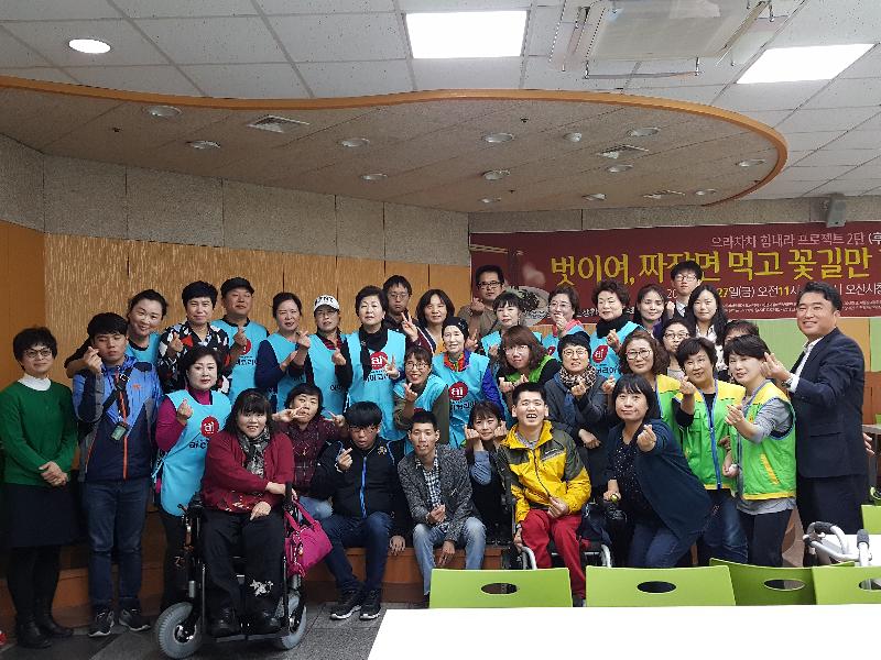 오산IL센터는 티켓을 판매하여 후원자들에게 짜장면, 떡, 과일, 커피 등 음식을 제공하였고, 후원행사 수익금은 전액 장애인, 인권활동 비영리단체 등을 대상으로 한 사업(‘으라차차 힘내라’ 프로젝트 2탄)에 쓰일 예정이다.