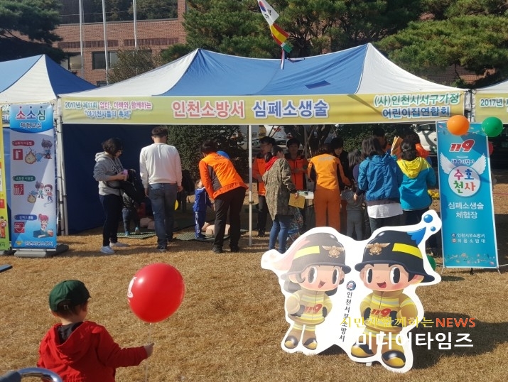 [미디어타임즈=문상수 기자] 인천서부소방서(서장 김준태)는 지난 28일 서구 인재개발원 운동장에서 열린 서구가정어린이집연합회 체육행사에서 시민들을 대상으로 119안전체험 코너를 운영했다.서부소방서는 ‘4분의 기적, 심폐소생술 체험장’이라는 테마로 실시하고 심폐소생술체험, 소방캐릭터 ‘영웅이’와 포토존, 어린이 소방복 입기체험 등을 실시하여 일상 생활 속에서 흔히 발생하는 주요사고에 대한 대처방법 교육과 동시에 소방정책을 홍보해 행사 내내 북적이며 큰 인기를 끌었다. 행사장에서 심폐소생술을 체험한 교육을 받은 학생은 “심폐소생술에 대해 막연한 관심만 있었는데 이번 기회에 직접 체험해보고 배울 수 있어서 좋았다”고 소감을 밝혔다.소방서 관계자는 “시민들이 소방서에서 준비한 체험을 통해 일상생활에 꼭 필요한 안전상식을 체득하고 즐거운 시간이였길 바란다”고 전했다.