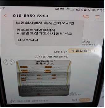 사례)외제차량 카페 회원이 전라 광주 소재에서 접촉사고 피해자가 되자, BMW 차량을 광주까지 내려가서 렌트해주고, 피해차량을 인천 소재 공업사에 입고하여 부품 등이 조달이 어렵다는 등의 이유로 장기간 수리하고, 유리막 코팅 업체에서 사고 이전에 유리막 코팅을 시공한 사실이 있다고 허위 품질보증서를 작성하여 위 보증서를 차주에게 문자를 보내고, 차주에게 전화 걸어 “만약 해당 보험사에서 연락이 오면 사고 이전에 디테일라운지에서 유리막 코팅한 사실이 있었다고 말을 하면 된다”고 알려 주어 말을 맞추고, 보험사에 유리막 코팅 비용과 렌트 기간을 과장하여 보험금을 청구하는 수법임. 피의자 일당 검거