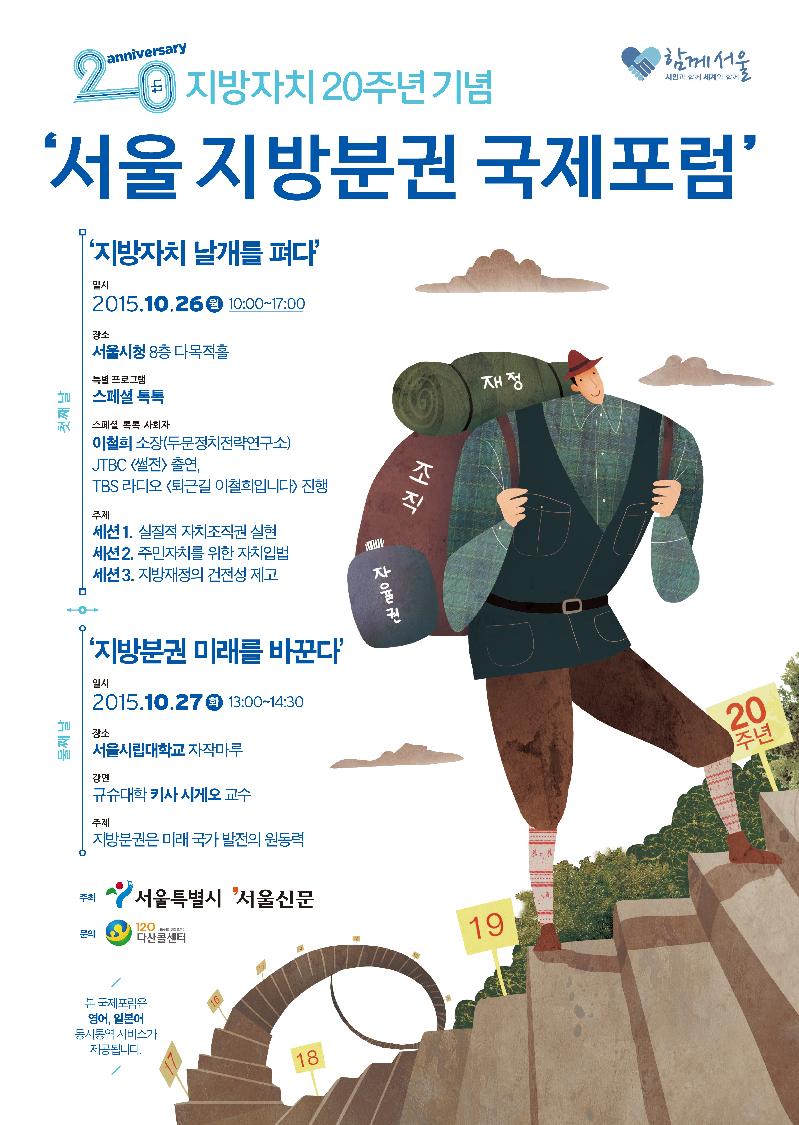 - 서울시, 지방자치 20돌을 맞아 진정한 지방분권 실현을 위해 국제포럼 개최 (10.26.(월) 10시, 서울시청 다목적홀)