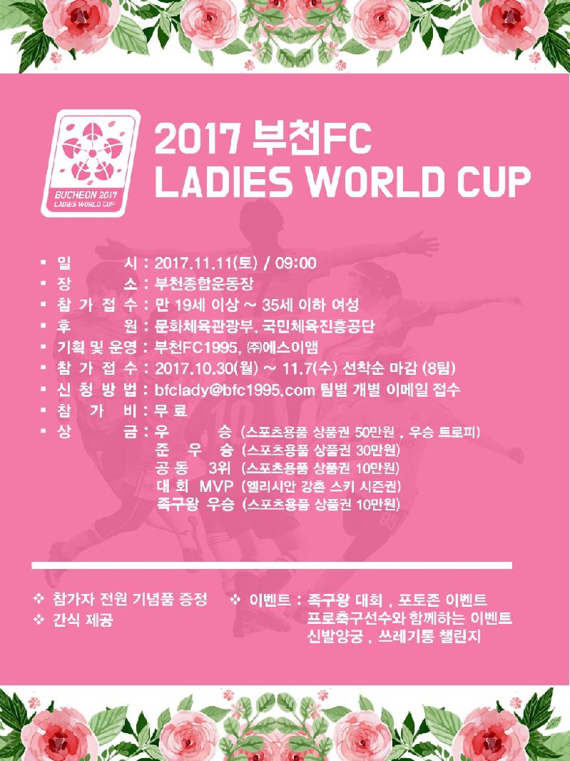 [미디어타임즈= 이옥수 기자] 올해로 3회째를 맞이하는 부천FC 레이디스 월드컵 대회가 다음 달 11일(토) 부천종합운동장에서 열린다.