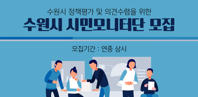 수원시는 시민 정책참여의 폭을 넓히기 위해 11월부터 시민 모니터단 모집 방식을 상시 모집으로 바꾸고, 모니터단에 참여할 시민을 추가 모집한다.