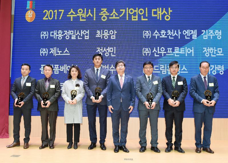 수원시는 1일 시청 대강당에서 시상식을 열고, 최용암 대표와 경영혁신·기술개발·수출진흥·창업 및 벤처·일자리창출·노사화합 등 6개 부문 수상자에게 트로피를 수여했다.