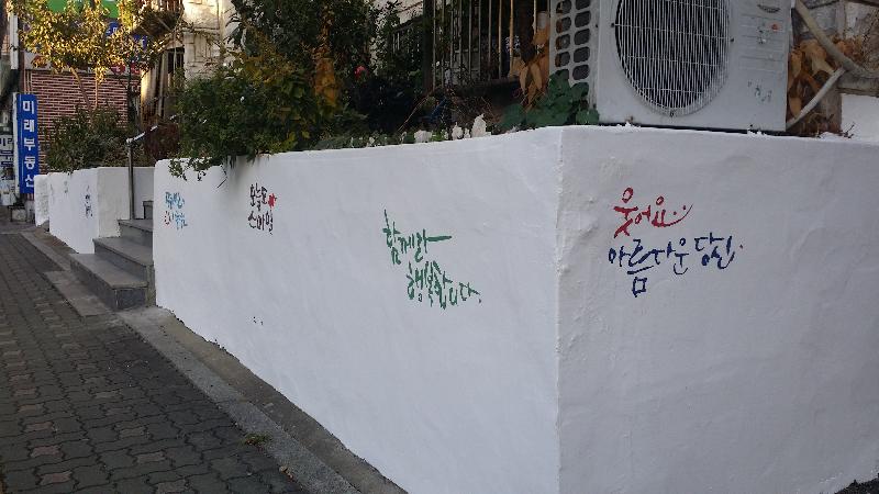 하촌서로 가꾸미(18통)는 금융고등학교 뒤편 골목길의 노후화된 벽면으로 인해 거리 분위기가 어둡고 비행 청소년들의 흡연장소가 되기 일쑤였던 지역에 마음을 위로하는 따뜻한 글귀를 적은 벽화작업을 통해 아름다운 거리 분위기를 조성했다.