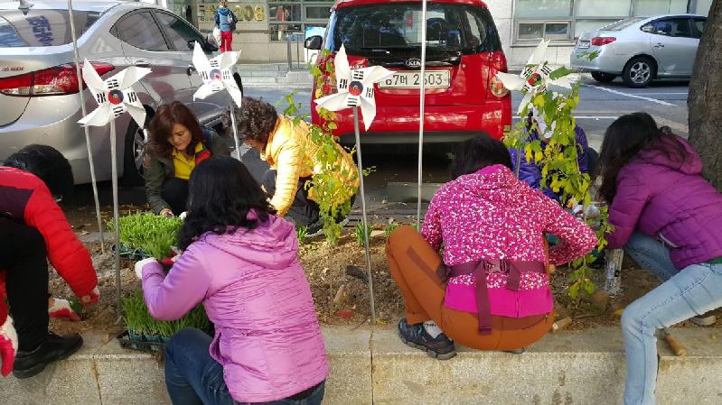 이후 구월2동 주민센터, 함께하는 교회, 상인천 새마을금고, 이삭예능유치원, 구월근린공원, 구월2동 경로당 등 6개소에 꽃양배추, 보리 등 겨울초화 1천600본을 식재했다.