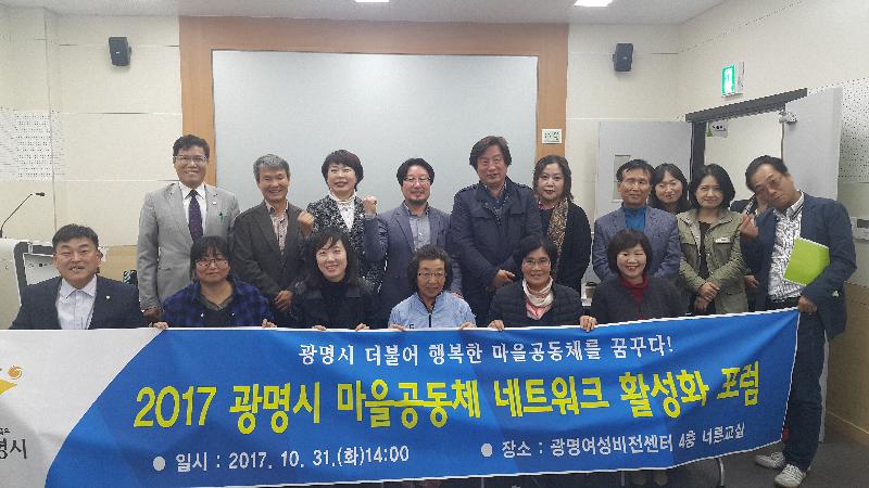 [미디어타임즈= 신훈종 기자] 광명시(시장 양기대)는 10월31일 광명시 여성비전센터 4층 너른교실에서 ‘2017 광명시 마을공동체 네트워크 활성화’ 포럼을 개최했다.
