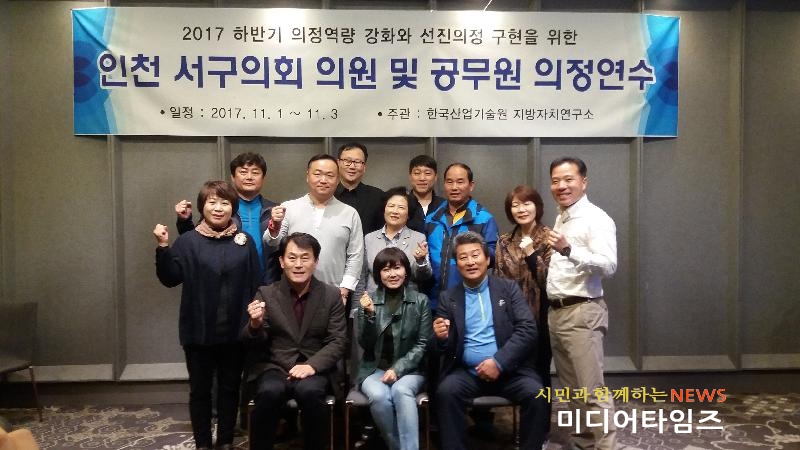 [미디어타임즈=홍기연 기자] 인천시 서구의회(의장 심우창)에서는 지난 11월 1일에서 3일까지 2박3일의 일정으로 “의정역량강화를 위한 의원 의정연수”를 부산에서 실시했다. 서구의회 의장을 포함하여 총 11명의 의원이 참석한 의정연수는 인천 서구에 꼭 맞는 예산안심사 실전기법, 민간위탁실무, 조례 개․제정에 필요한 실무기법 및 문제점 등에 대한 전문 강의를 통하여 의정활동에 필요한 전문지식 함양과 의원 역량강화에 힘썼다.