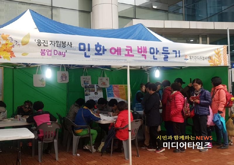 [미디어타임즈=문상수 기자] 인천옹진군자원봉사센터에서는 지난2일부터 3일까지 2일간 옹진군청 파도광장에서 개최되는 옹진 섬 농·수산 특산물 직거래·먹거리 장터 내에 자원봉사 붐 분위기 조성을 위한 홍보부스를 운영했다.이번 홍보부스는 직거래와 먹거리 장터를 참여한 지역주민들을 대상으로 자원봉사 신규 접수를 실시하고 체험프로그램과 민화에코백 만들기 실습을 실시하여 큰 호응을 얻었다. 나아가 이들이 앞으로 자원봉사에 대한 적극적인 관심과 참여에 동참하는 계기가 되기를 기대한다.옹진군자원봉사센터에서는 이번 행사를 통해 자원봉사에 대한 적극적인 관심과 참여의 계기를 만들고, 나눔이 일상이 되어 자원봉사가 삶 속에 녹아있는 행복한 옹진을 만들기 위해 앞으로 여러 행사에 참여하여 지속적으로 홍보를 실시할 계획이다.