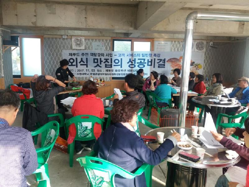 경기창작센터, 수원대학교 호텔관광대학원, 수원화성융합문화센터와 함께 마련한 이번 교육은 제부도 내 식당, 펜션, 모텔 업주 및 종사원 총 33명이 참석했다.