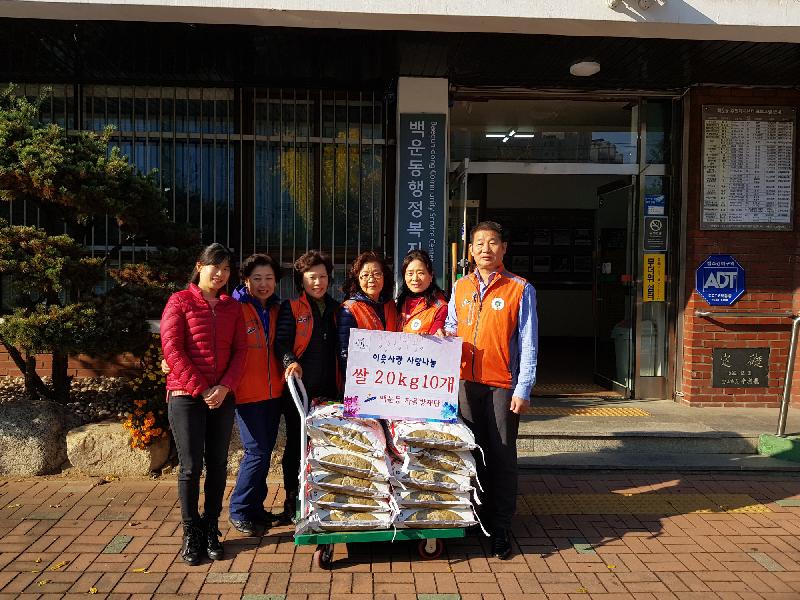 [미디어타임즈= 신훈종 기자] 안산시 백운동 자율방재단(대표 양승복, 이하 방재단)은 지난 3일 백운동 행정복지센터(동장 유진숙)에서 ‘이웃사랑 사랑나눔 쌀 전달식’을 갖고 어려운 이웃에게 사용해달라며 사랑의 쌀 20kg 10포를 기탁했다.