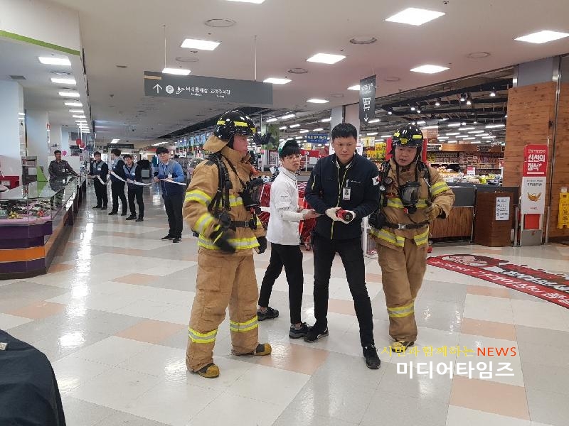 | 홈플러스 가좌점 민 ․ 관 합동 소방훈련 사진. <ⓒ미디어타임즈> |