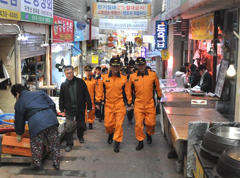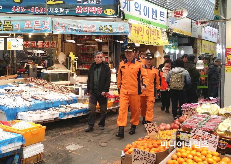 [미디어타임즈=문상수 기자] 인천남부소방서(서장 류환형)는 14일 겨울철 소방안전대책의 일환으로 관내 전통시장인 석바위시장을 대상으로 현장예찰을 실시했다.이번 예찰은 겨울철에 자주 발생하는 전통시장 화재와 관련하여 화재위험요소 등 안전실태를 점검하고, 화재예방 안전대책을 마련하기 위해서 진행되었다.주요 내용으로는 ▲각 점포 내 난방기구 등 화기취급시설 안전점검 ▲야간 순찰조 현황 및 시장 철시 등 운영시스템 확인 ▲공용 소방시설 유지관리 상태 점검 등을 실시하여 시장상인들의 안전의식을 제고하는데 중점을 두었다. 류환형 서장은 “영세한 점포가 밀집해 있는 전통시장은 한번 화재가 발생하면 대형화재로 이어질 수 있는 만큼, 취약지점을 지속적으로 점검하고 각종 위해요인을 제거하여 재산 및 인명피해가 발생하지 않도록 관계인들의 많은 관심을 바란다.”고 전했다.