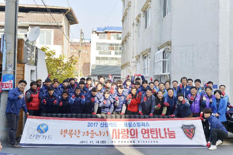 [미디어 타임즈 = 배수남 기자] 포항스틸러스가 신한카드, 포항시와 함께 사랑의 연탄을 나누며 이웃들에게 따뜻한 겨울을 선물했다. 포항스틸러스 프로 선수단은 14일 오전, 포항 남구 무지개 공원 인근에 모여 손수 연탄을 배달하였다. 형들에게 뒤질세라, 유소년 선수단은 강변체육공원 인근에서 연탄을 옮기며 구슬땀을 흘렸다. 포항 구단은 포항시의 도움으로 기초수급자, 차상위계층 등 추운 겨울을 지내는데 도움의 손길이 필요한 곳을 사전에 파악해 총 20가구에 연탄을 전달하였다. 포항스틸러스는 2013년부터 올해까지 5년째 ‘사랑의 연탄나눔’을 이어오고 있다. 포항이 K리그에서 1골을 기록할 때마다 신한카드와 함께 100장씩 적립한 연탄은 매년 연말, 지역 내 어려운 이웃들에게 전해진다. 올 시즌에는 현재까지 기록한 60득점에 맞춰 총 6,000장의 연탄을 나누었다. 이번 행사에는 포항시 최웅 부시장, 이상근 시의원, 박희정 시의원, 신한카드 문동권 본부장도 함께 참석해 연탄 배달에 힘을 더해 주었다. 지난 5년간 진행한 ‘사랑의 연탄나눔’에 항상 주장으로서 참석해 온 황지수는 “좋은 일에 매번 함께 할 수 있어서 감사하다. 매년 같은 생각이지만, 다음 시즌에는 더 많은 골로 더 많은 도움을 드리고 싶다. 그러면 재미있는 경기, 좋은 경기력은 덤으로 따라올꺼다.”라고 소감을 밝혔다. 포항스틸러스는 지속적인 사회공헌활동을 통해 이웃을 돌아보고 지역과 함께하며 팬들의 사랑에 보답할 수 있도록 최선을 다할 계획이다.