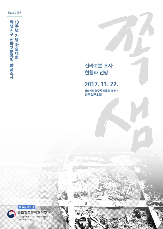 경주 쪽샘지구 신라고분유적은 경주 시내 대릉원 일원(사적 제512호)에 속하는 4~6세기 신라 귀족들의 집단 무덤으로 국립경주문화재연구소가 유적 정비를 위해 경주시로부터 의뢰를 받아 발굴조사를 시작한 지 올해로 10년째를 맞았다. 국립경주문화재연구소는 책임운영기관으로서 돌무지덧널무덤을 비롯한 700여 기 이상의 고분들을 새로 확인하고 신라 장군과 말이 착용한 갑옷을 최초로 발굴하는 등 중요한 학술성과를 꾸준히 내고 있다. * 대릉원: 미추왕(味鄒王)을 대릉(大陵)에 장사지냈다는 삼국사기 기록에서 딴 이름으로 신라 왕족의 무덤이 모인 곳 * 돌무지덧널무덤(적석목곽분, 積石木槨墳): 죽은 이와 유물을 넣은 덧널의 바깥에 돌을 덮고 다시 흙을 입혀 다진 무덤 구조