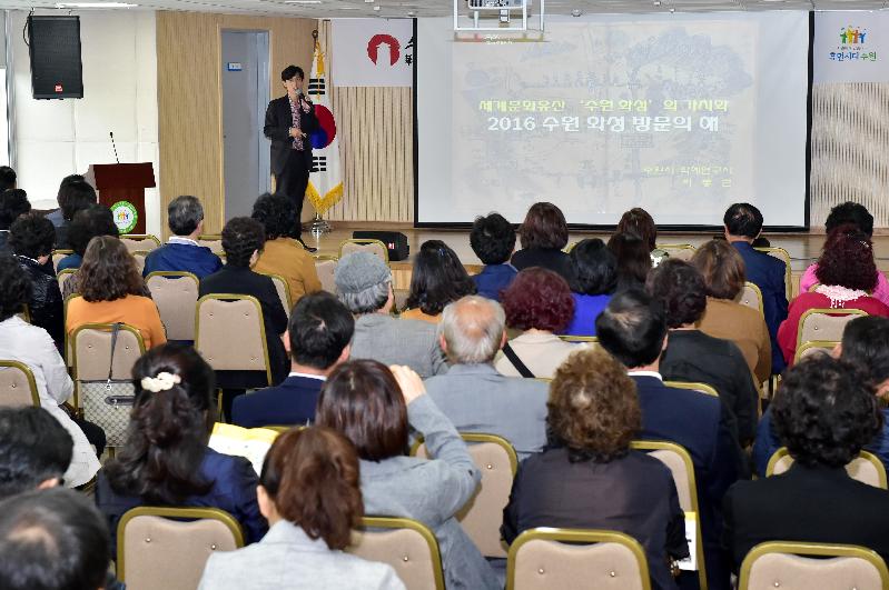 시는 ‘2016 수원화성 방문의 해’ 사업에 대한 공감대를 형성하고 수원화성의 가치에 대한 올바른 이해를 돕고자 공직자와 시민을 대상으로 각 구청을 방문해 순회설명회를 개최하고 있다.
