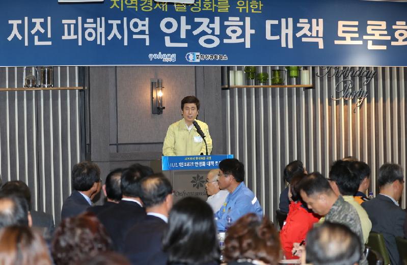 한편, 이날 포항시의 경제활성화 종합대책 발표에 앞서 토론회에서는 각 분야별 대표자들 지역경제 활성화를 위한 다양한 의견을 제시했다. 특히 포항제철소는 지역경제 활성화를 위해 지역 식당에서만 사용가능한 특별 간담회 예산 4억1,000만원을 편성하고, 포항 특산물 구입운동도 펼쳐나가겠다며 지역경제 조기 정상화 실현을 위한 적극적인 의지를 보이기도 했다. 11.15 지진 이후 시민들의 외출자제, 외래 관광객의 포항방문 등으로 주요 관광지와 전통시장 방문객이 급격히 감소했으나, 포항시의 적극적인 대처와 함께 피해응급복구가 속속 이뤄지면서 서서히 안정을 찾아가고 있다. 포항시장은 “53만 포항시민과 한마음 한뜻으로 지진피해를 조기에 극복하고, 지역경제를 반드시 살려내겠다.”며, “지진으로 인한 불안심리 해소와 정상적인 경제활동을 통한 소비촉진 분위기 조성에 시민들의 참여와 협조를 당부한다.”고 말했다. 아울러 “지역경제의 조속한 안정을 위해 중앙정부에 행·재정적 지원을 적극 건의하겠다.”고 덧붙였다.
