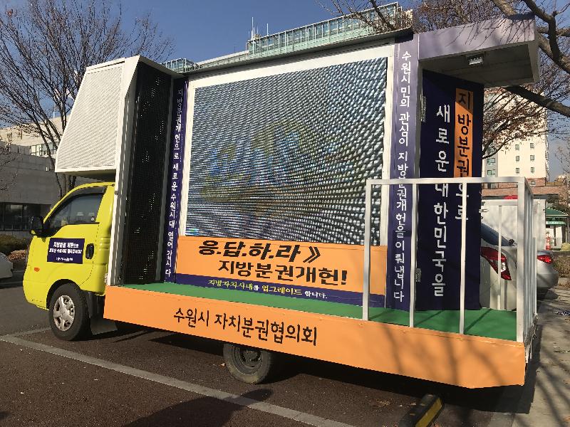 | 수원시가 12월 동안 운영하는 ‘지방분권 개헌’ 홍보트럭. |