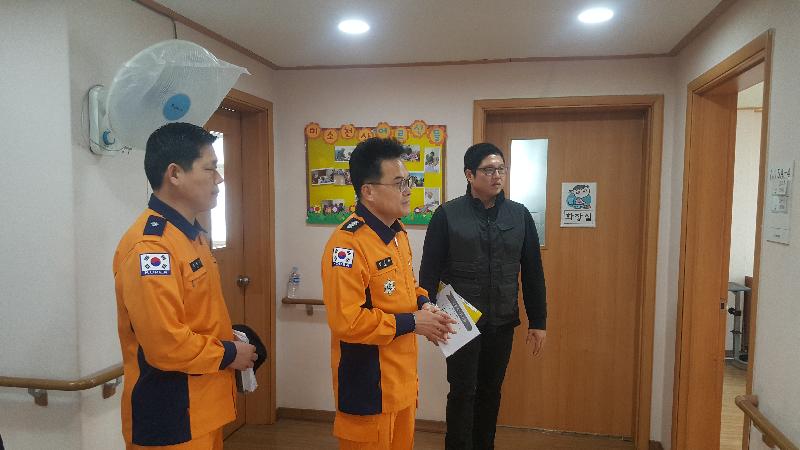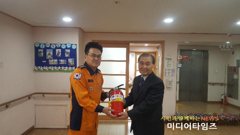 [미디어타임즈=문상수 기자] 인천서부소방서(서장 김준태)은 7일(목) 화재취약시기인 겨울철을 맞아 관내 화재취약대상에 대한 재난안전사고를 미연에 방지하고 관계인의 안전의식을 높이고자 현장예찰활동을 실시했다.7일 오전 10시부터 낙원요양원(서구 완정로 10번길 6-7소재)을 방문한 김준태 소방서장은 ▲관계인의 피난시설 및 방화시설의 유지ㆍ관리에 관한 사항 확인 ▲자체 소방시설 작동방법 및 소화기 등 기초소화시설을 사용법 ▲화재 등 재난 발생 시 초기대응 및 노인 피난 대책 등을 확인 점검했다.또한 낙원요양원 거주시설 및 노인의료복지시설 관계자와 간담회를 갖고 애로사항 청취와 화재예방 취지를 설명하고 소방시설 유지관리에 만전을 기울여 줄 것을 당부하며 소화기를 기증했다.이와 관련 김준태 서장은 "노인요양시설의 경우 대다수 수용자가 고령 및 거동불편환자 등으로 자력대피가 어려워 대형인명피해가 우려돼 자체 순찰강화와 지속적인 훈련으로 노인 등 수용자에 대한 안전 관리에 최선을 다해 달라"고 당부했다.