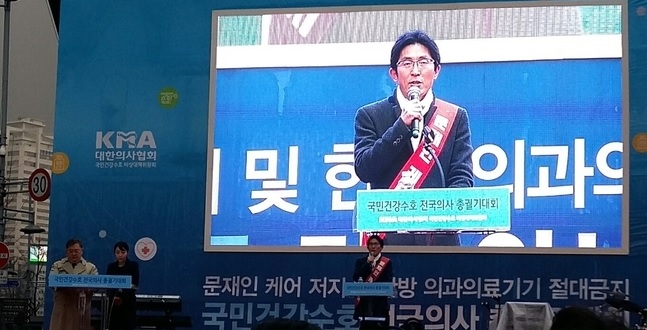 대한의사협회 국민건강수호 비상대책위원회는 10일 서울시청 인근 덕수궁 대한문 앞에서 ‘문재인 케어 반대 및 한의사 의료기기 사용 반대 전국의사 총궐기대회’를 열고 "'문재인 케어'가 의료 전문가 집단과의 합의 없이 졸속으로 추진되고 있다"고 주장했다.
